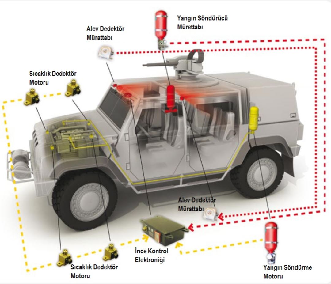Zırhlı araçların infilak bastırma sistemlerinin bakım, onarım ve tüplerin dolum hizmetlerinin verilmesi. Aylık ve Yıllık bakım hizmetleri, Elektronik kart tamiri ve Yazılım çözümleri